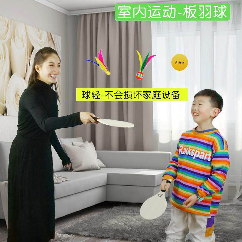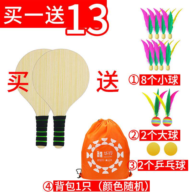 Oak Cricket Board Badminton Racket Indoor Solid Wood Shuttlecock Racket Adult Children Three Hairy Racket Suit Fitness Ping-pong Ball