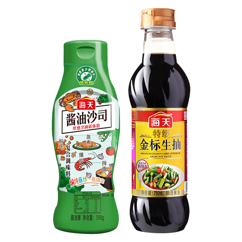 Sea Tianity Class Gold Label Raw Pumping 750ml Soy Sauce Sand Division 590g Family Clothing Combined Soy Sauce Cool and fried vegetables Tired