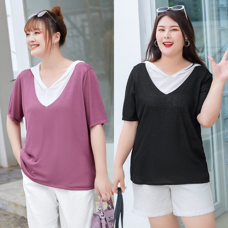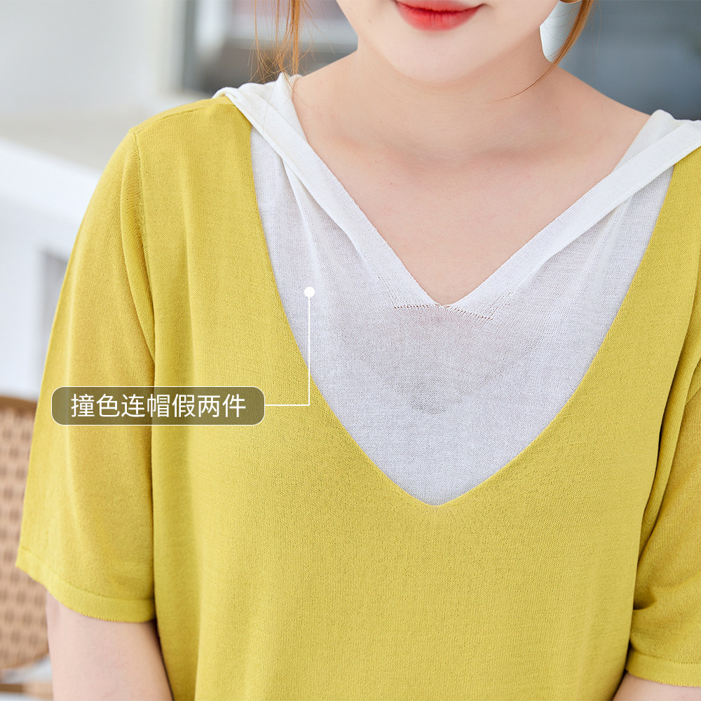 MSShe big size women's dress 2022 new summer dress micro-fat mm cool and breathable ice silk fake two short sleeve air conditioning