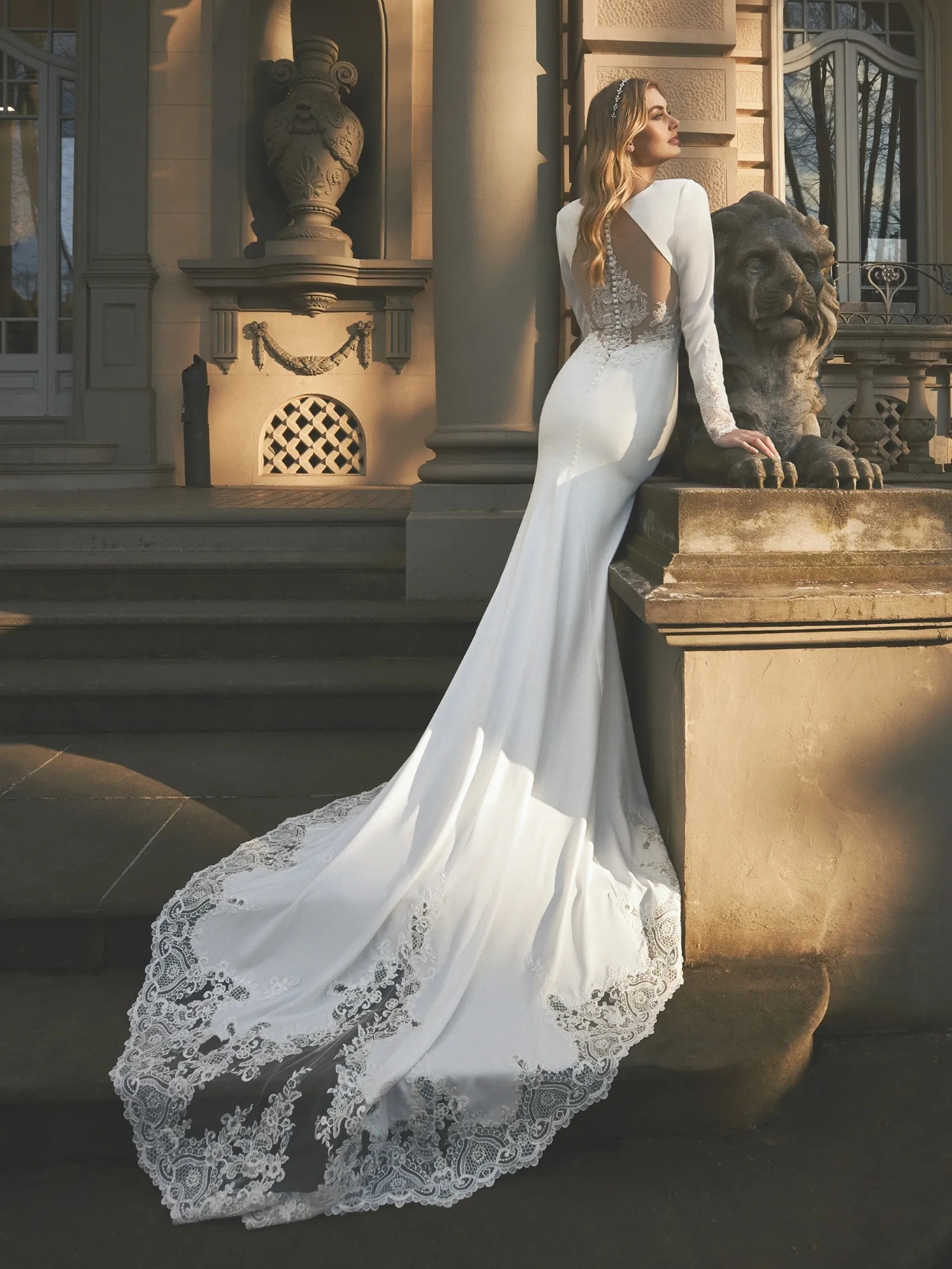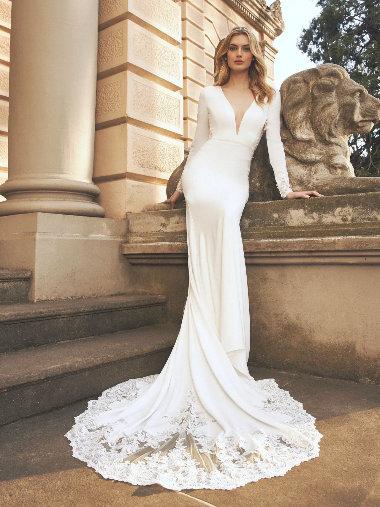 Wedding Dress Dress 2022 New V collar Long sleeves Advanced texture minimalist Temperament Bridal Satin Tail Light Yarn Outdoor