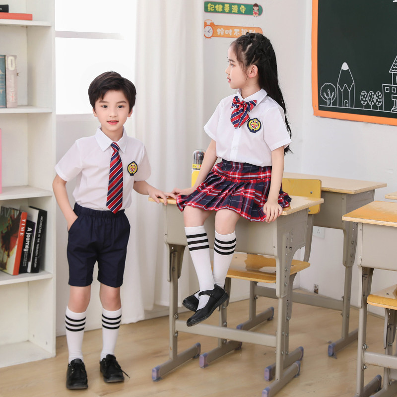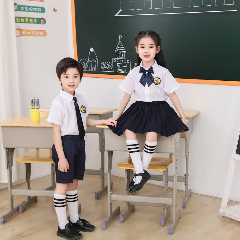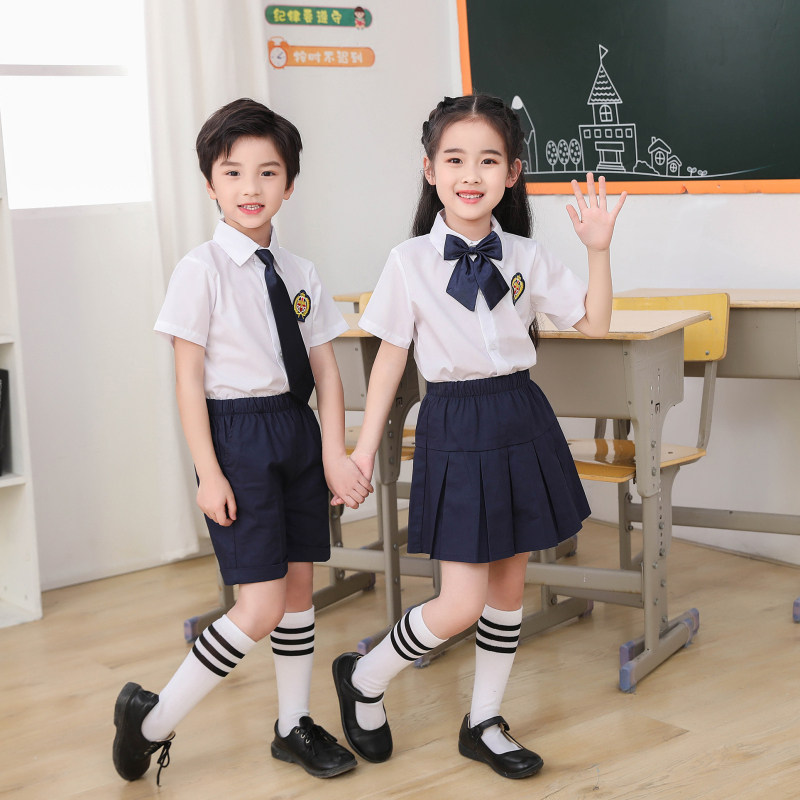 A short sleeve square skirt Flower collar socks B short sleeves shorts Flower tie socks C short sleeves dress blue collar socks D short sleeves shorts blue tie socks