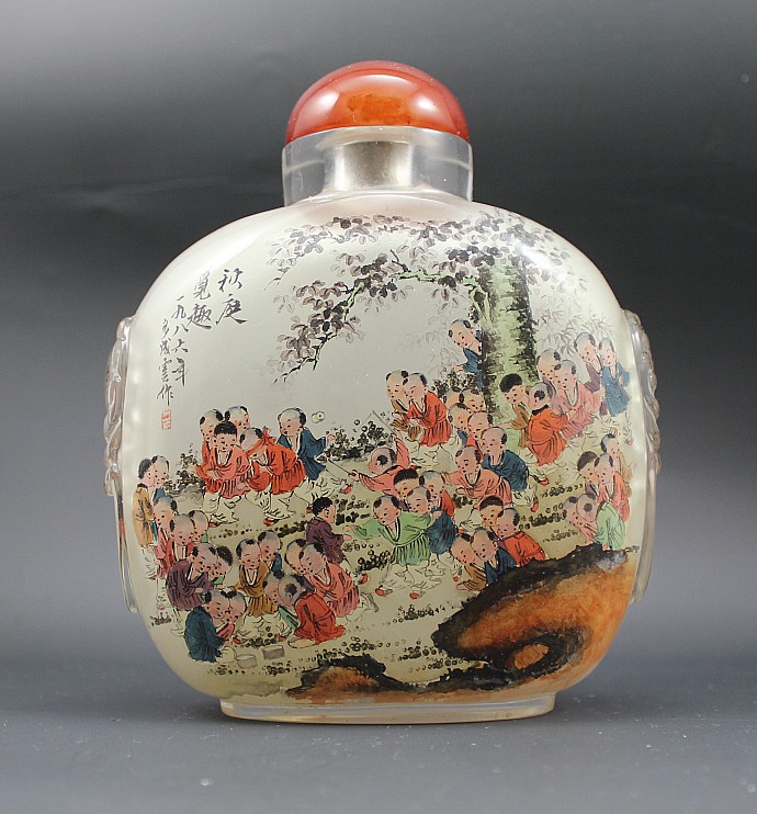 Famous Inner Paints Snuff Pot Wang Xi's Three Apostolic Disciples Dosed as Cloud Yuan's Old Cover 1986 Works