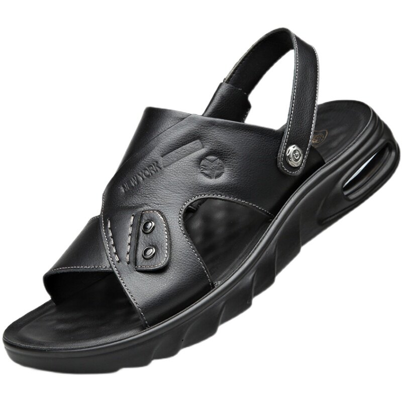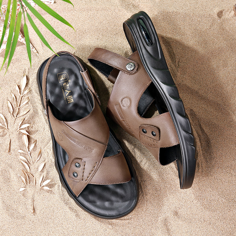 Old man's head sandals summer men's leather casual beach shoes men's leather breathable flat heels open toe non-slip sandals and slippers