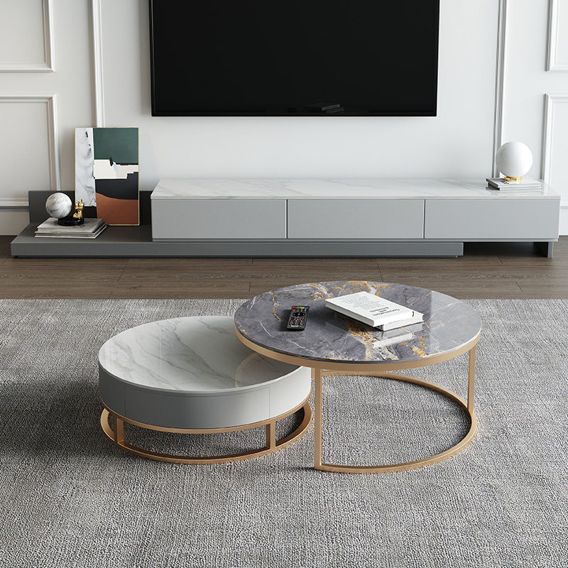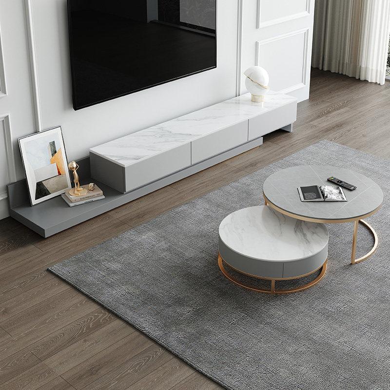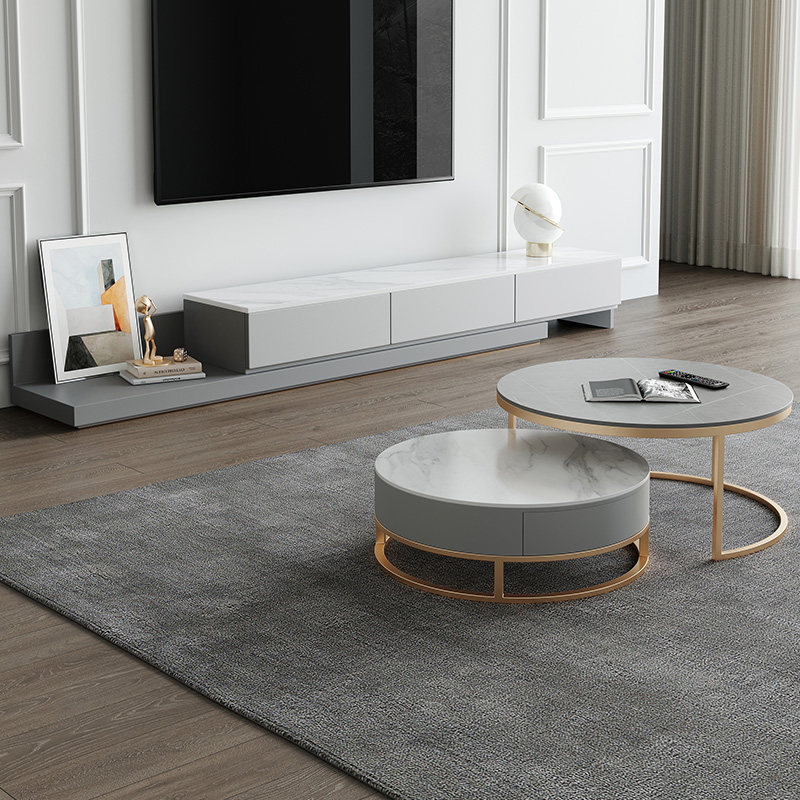 Slab tea table TV cabinet combination small apartment light luxury modern living room 3 meters long telescopic floor TV cabinet