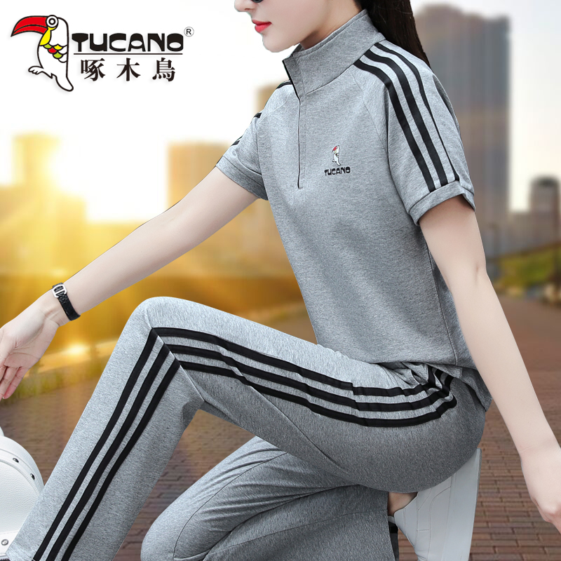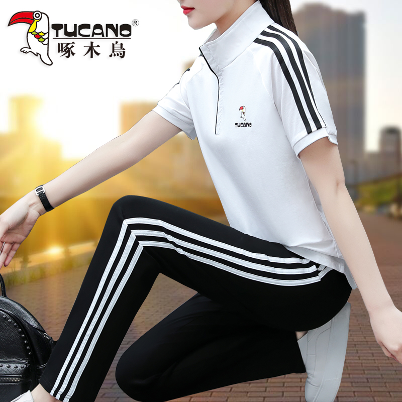 Woodpecker Sports Suit Female 2022 New Summer Short-sleeved Pure Cotton Korean Style Western-style Casual Wear Thin Two-piece Set