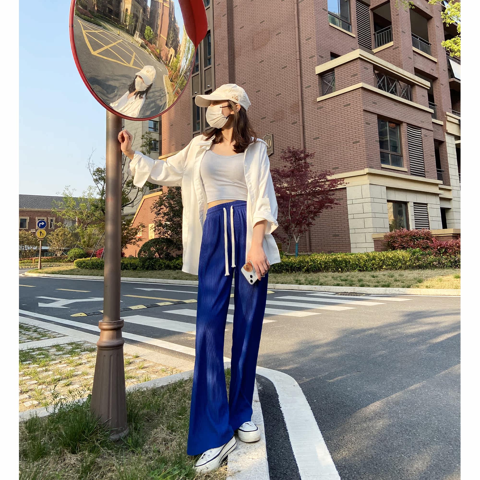 Throw throw home 2 pieces minus 10 yuan Floating on the legs like air pants Klein blue fluttering pants