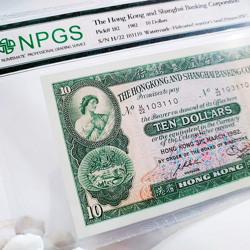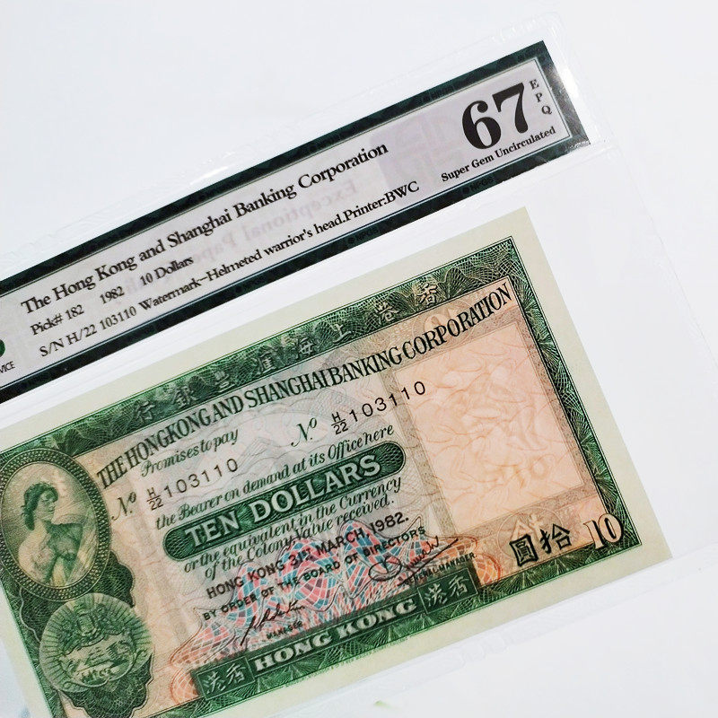 HSBC Hong Kong 10 yuan 67 points graded coins three 103110 real shot drawings coins 1982 Hong Kong and Macau banknotes