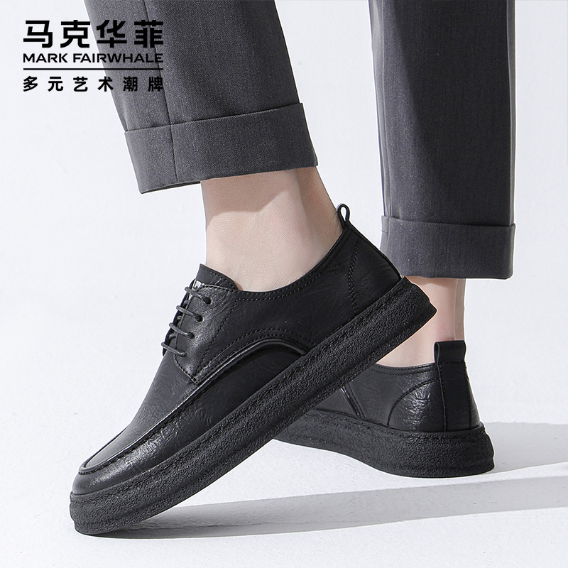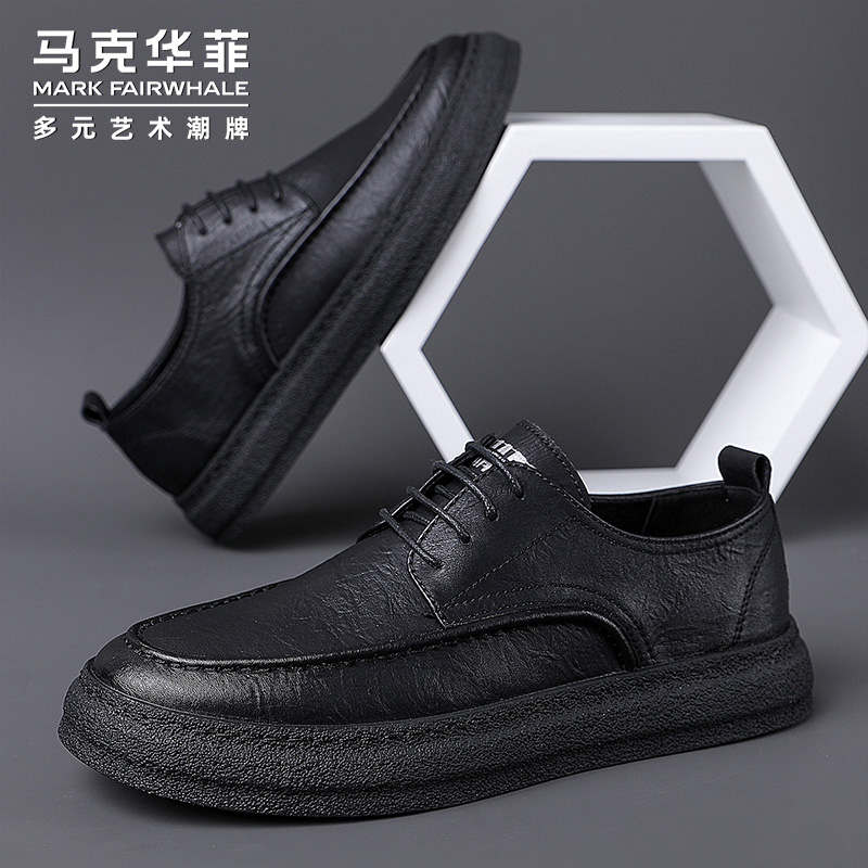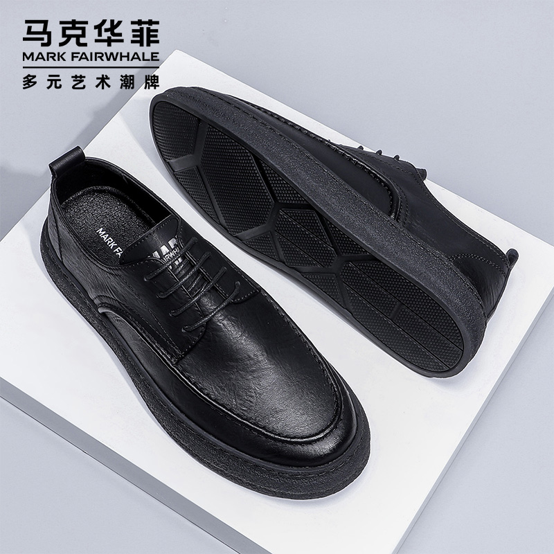 Mark Huafei business casual leather shoes men's shoes 2022 new summer men's shoes black soft bottom British genuine leather