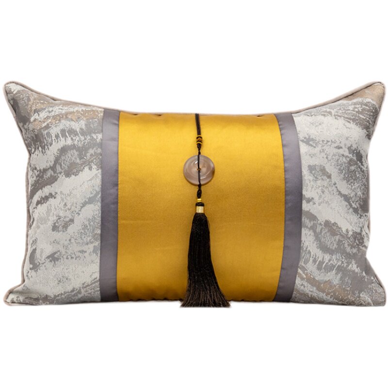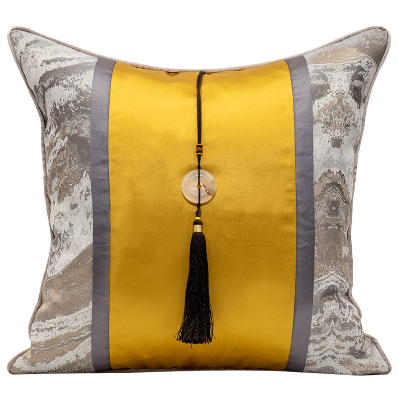 High-end prototype room light lavish cushion with pillow cover Chinese living room sofa waist pillow close to pillow square backrest cushion yellow grey