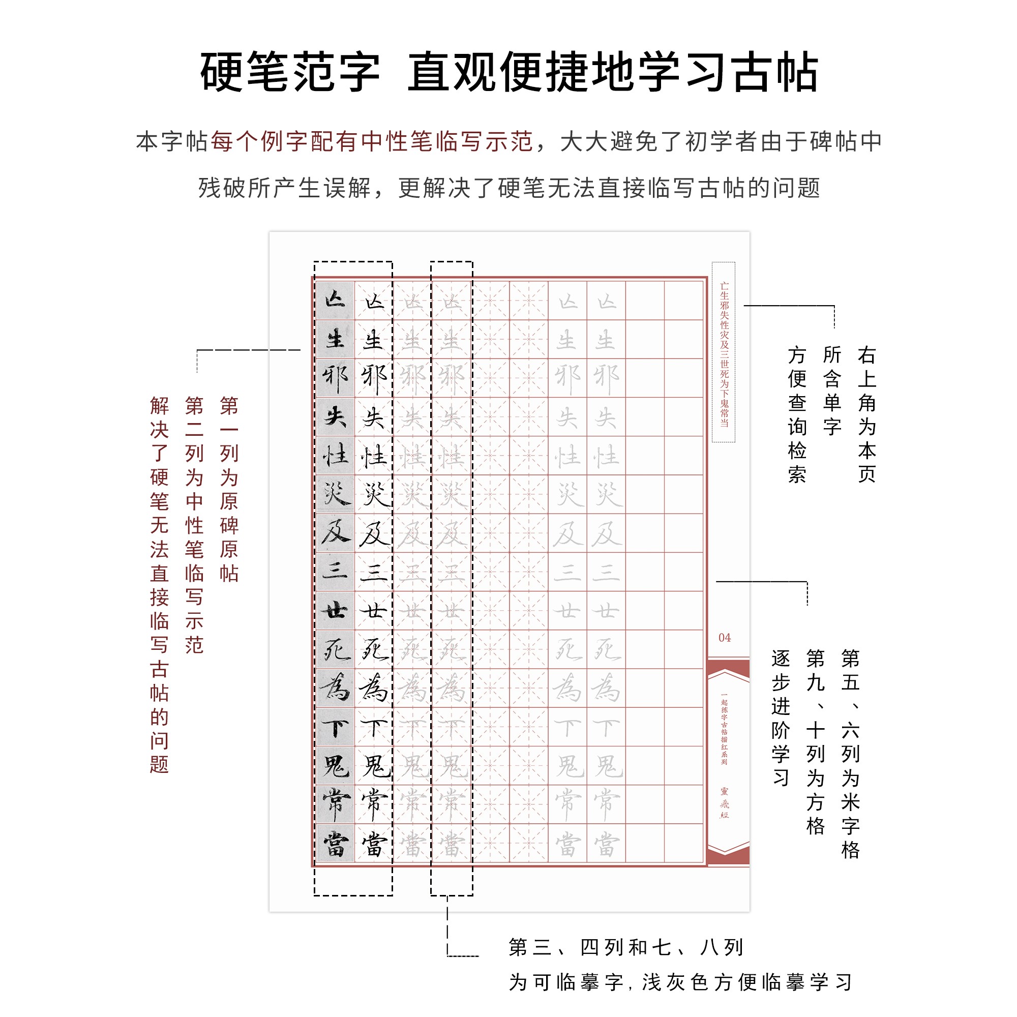 Practicing together Tang Xiaokai Lingfei scripture copybook copying ancient post hard pen calligraphy training tracing red paper field grid