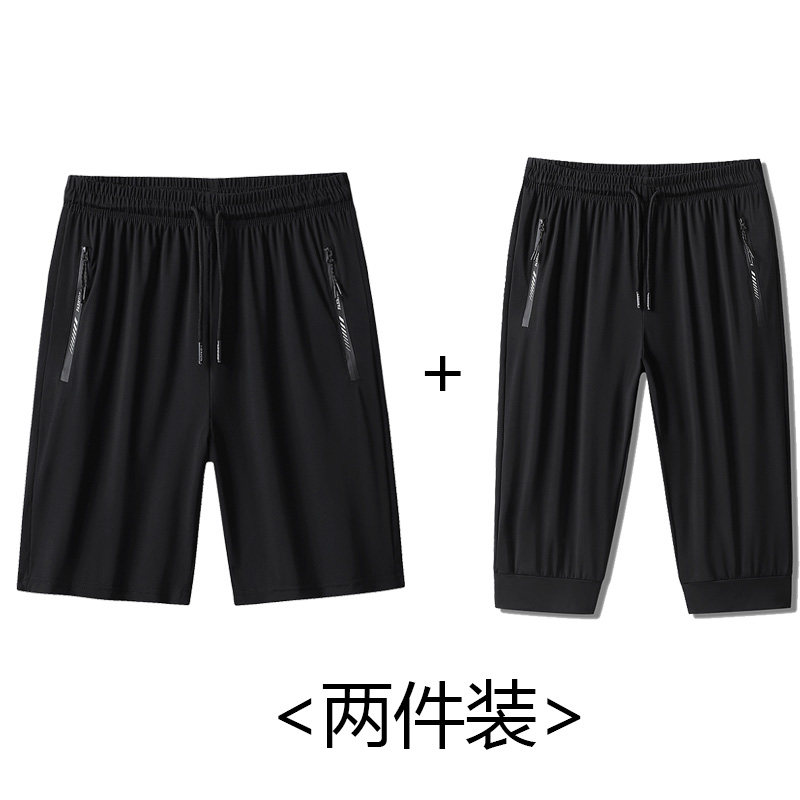 Summer ice silk shorts male gats up pituitary semi-cut pants fattener running quick dry 50% pants breathable shorts