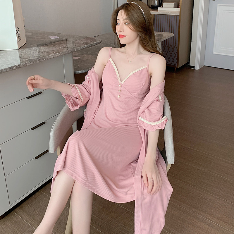Sling nightdress women's summer pure cotton with chest pad sexy pure desire pajamas 2022 new summer nightgown two-piece set