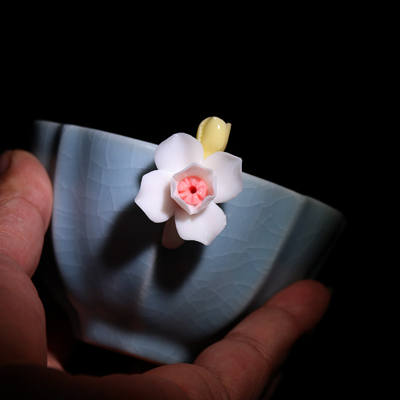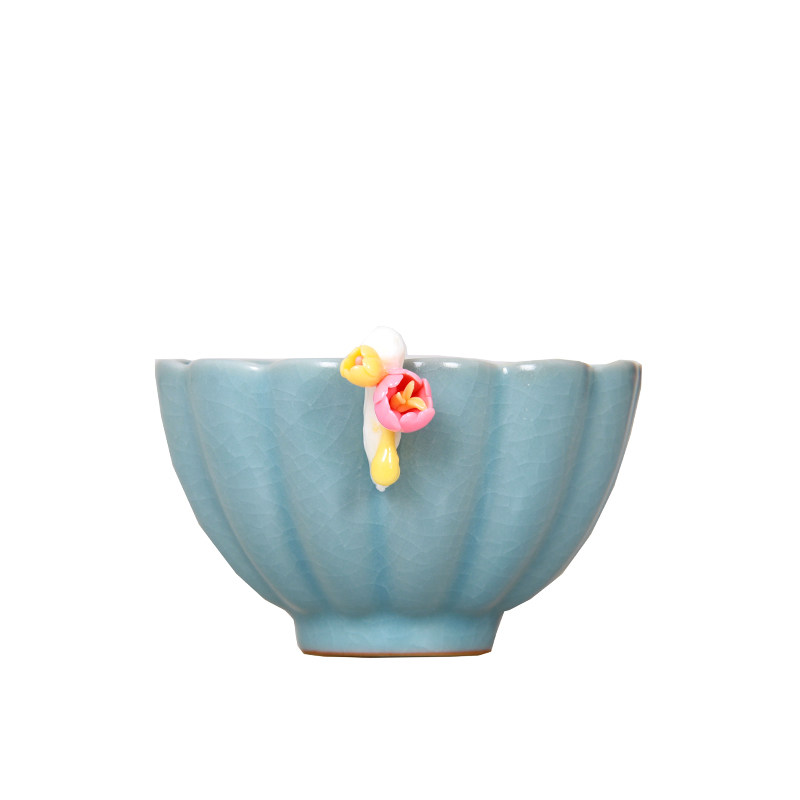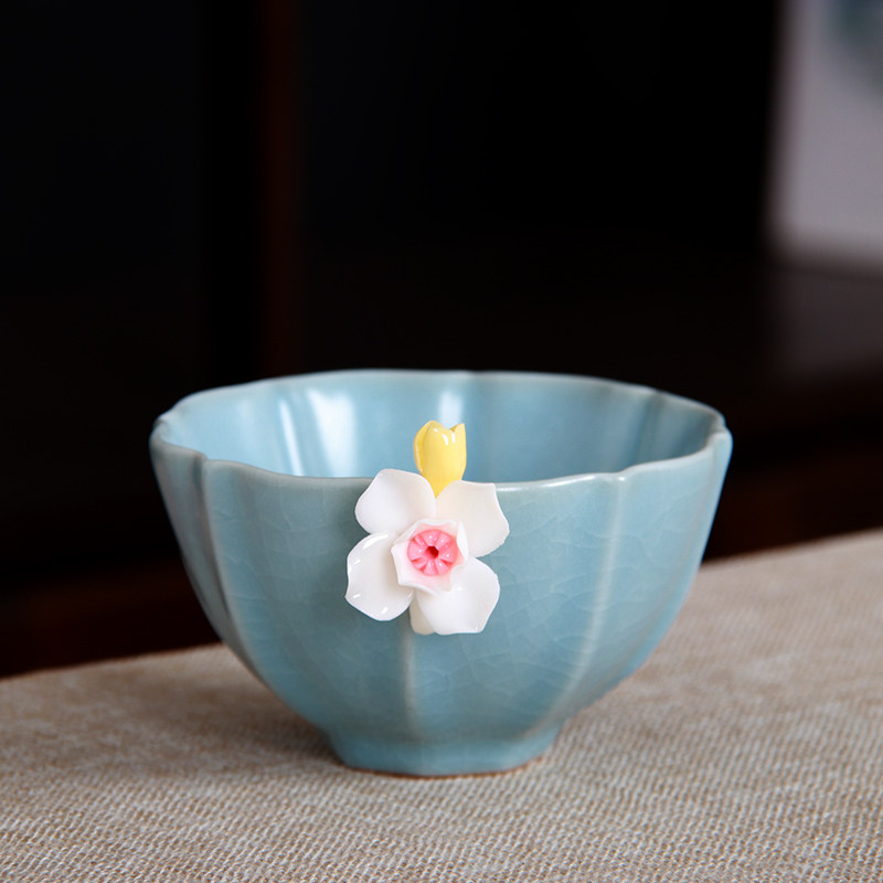 Sky Blue Ru Kiln Tea Tea Tea Tea Tea Cup Handmade Plum Blossom Cup can raise the owner's Cup of Tea Tea Cup Individual Cup Single Cup