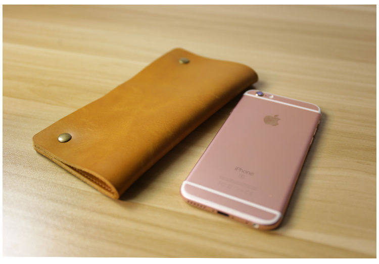 Mobile wallet men's long version thin buckle clutch bag retro leather mobile phone bag simple leather bag women