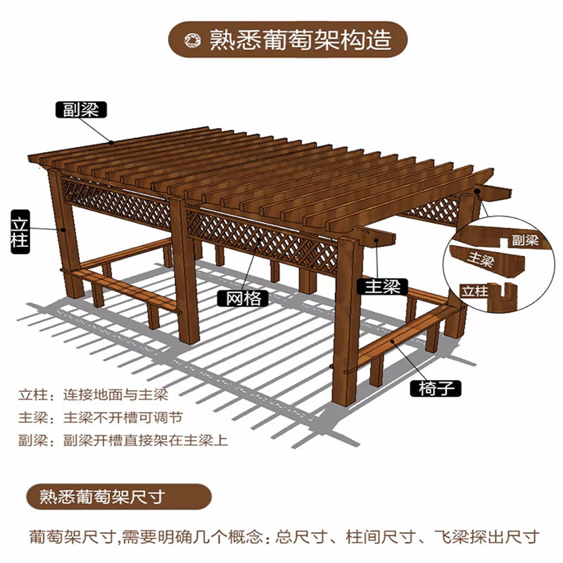 Jinan Anticorrosive Wood Grape Shelf Patio Carbonated Wood Promenade Outdoor Cool Pavilion Villa Flowers Box Gallery Terrace Wooden Flower Racks-Taobao