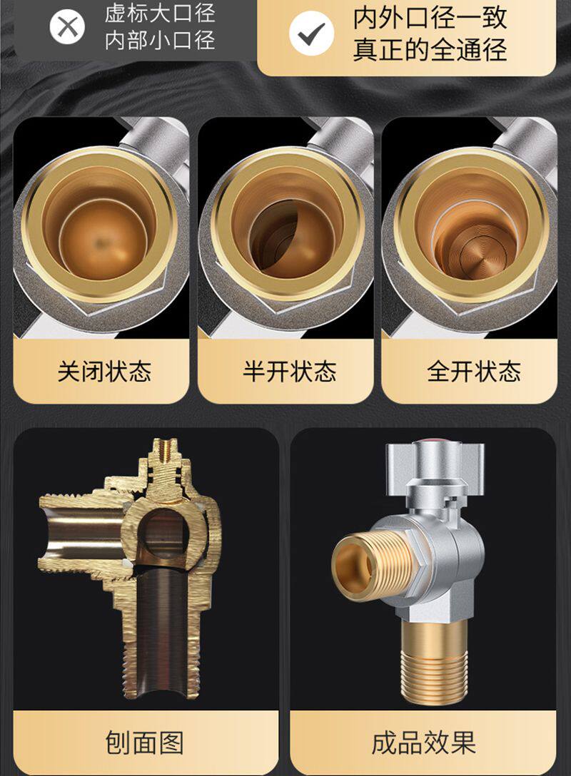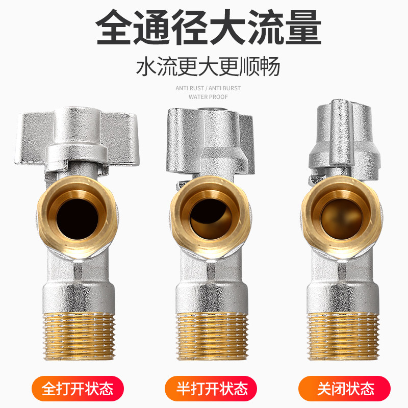 Full copper large flow triangular valve hot and cold water gas water heater 4 points 6 points large pass diameter ball valve switch ball core angle valve-Taobao