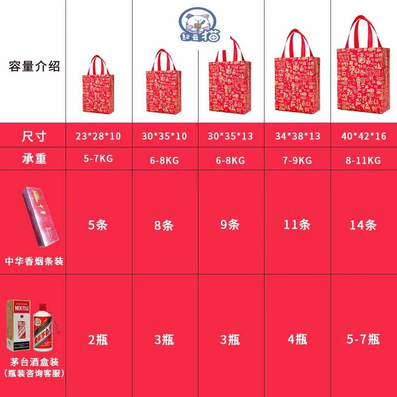 Gift Bag Upmarket Big Fu Character Cigarettes Wine Delivery Gift Bags Unwoven Fabrics Festive Red Bags Wedding Carry-on Bags