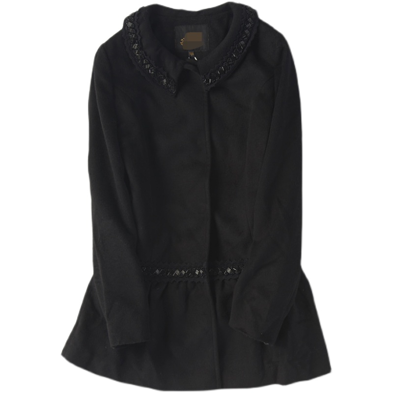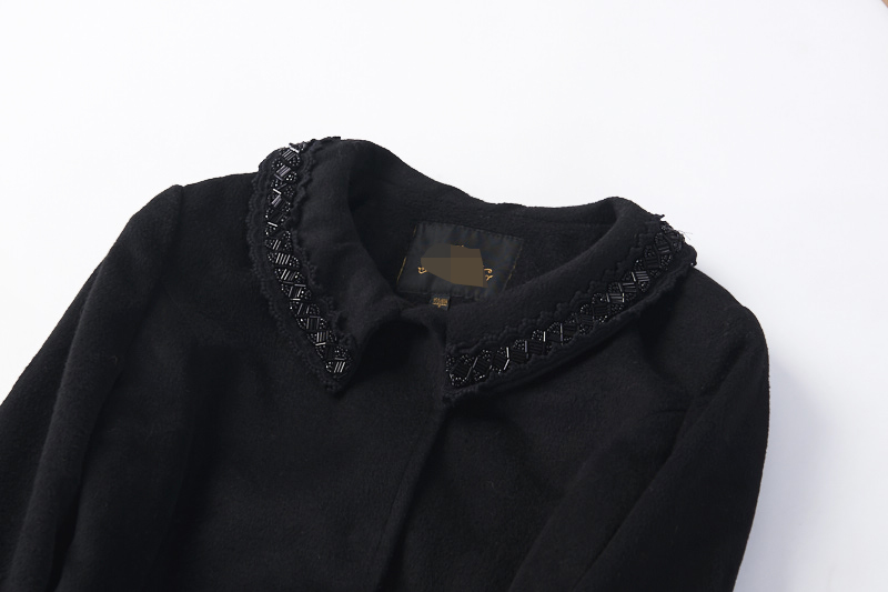 65059 Spring and autumn new women's clothing Han version Turned Collar Single Row Button Fashion Pearl Lace medium Long version of large coat jacket 42