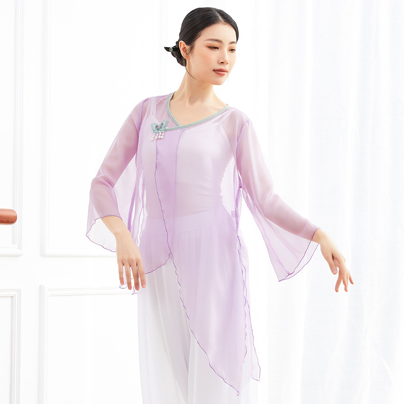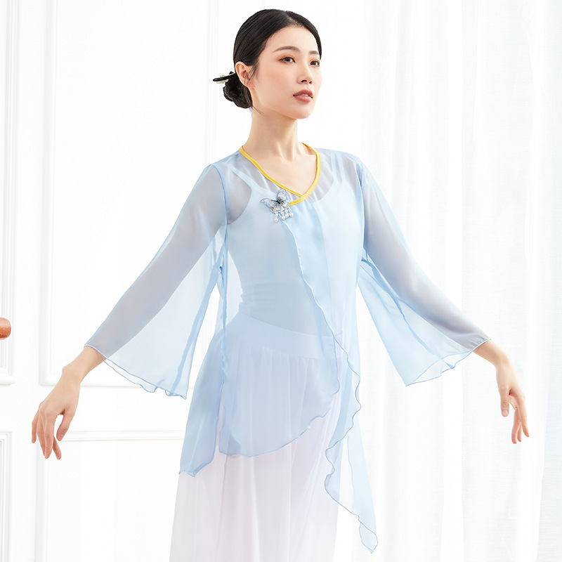 Classical Dance Suit Women's Body Rhyme Sky Silk Snowspinning Stage Suit Flutter of the Elegant Art Exam blouses Gongfeng Stage ethnic costumes