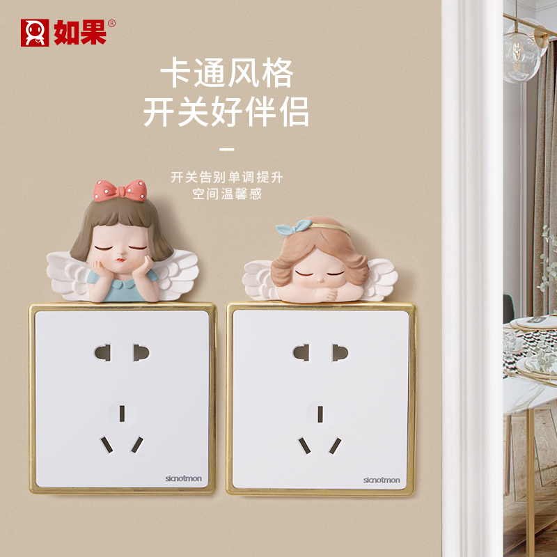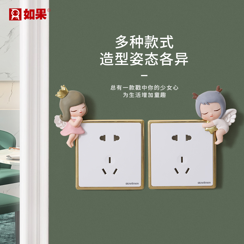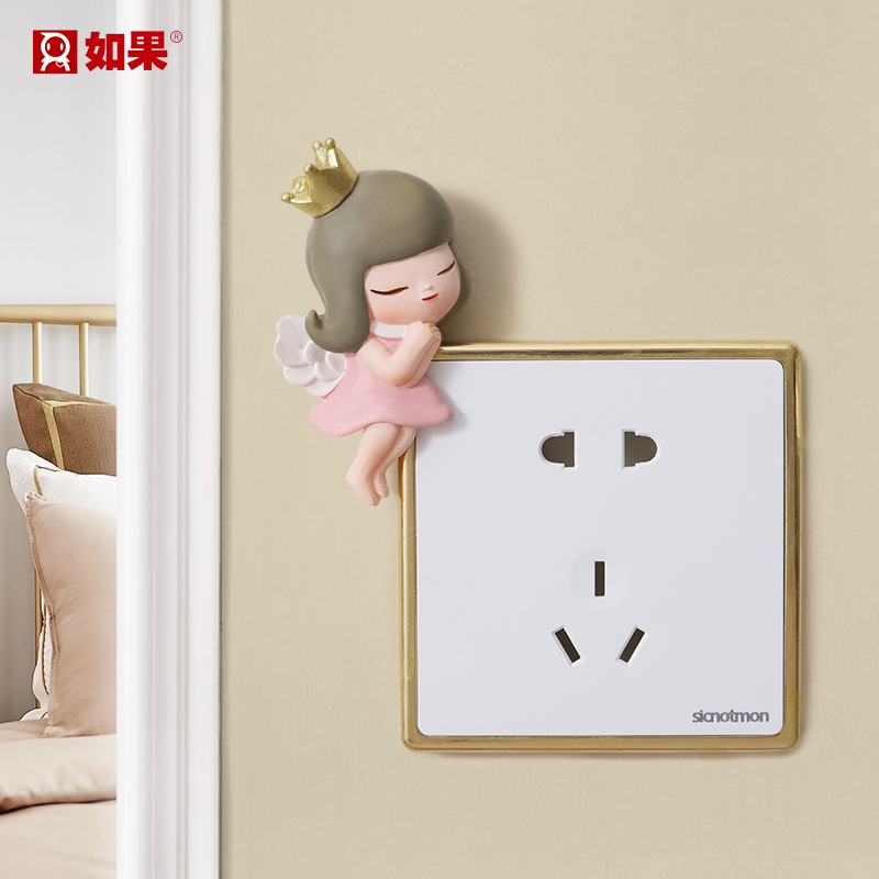 Cute little girl home room wall decoration children's room wall decoration resin switch sticker three-dimensional socket sticker
