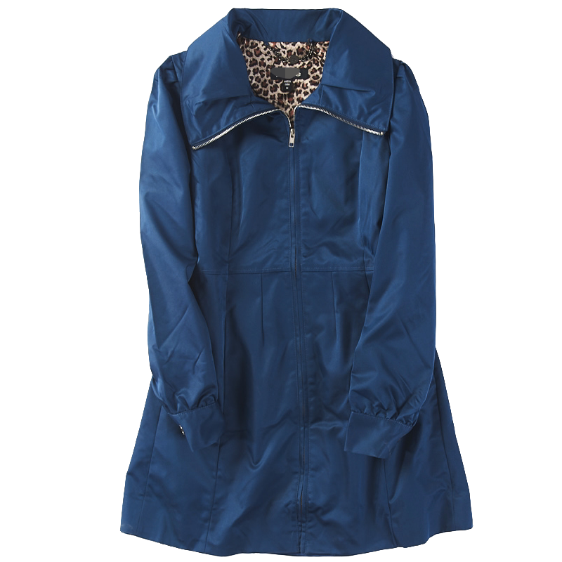 66288 Spring and autumn new women's zipper stand collar retro casual solid color all-match mid-length windbreaker jacket 42