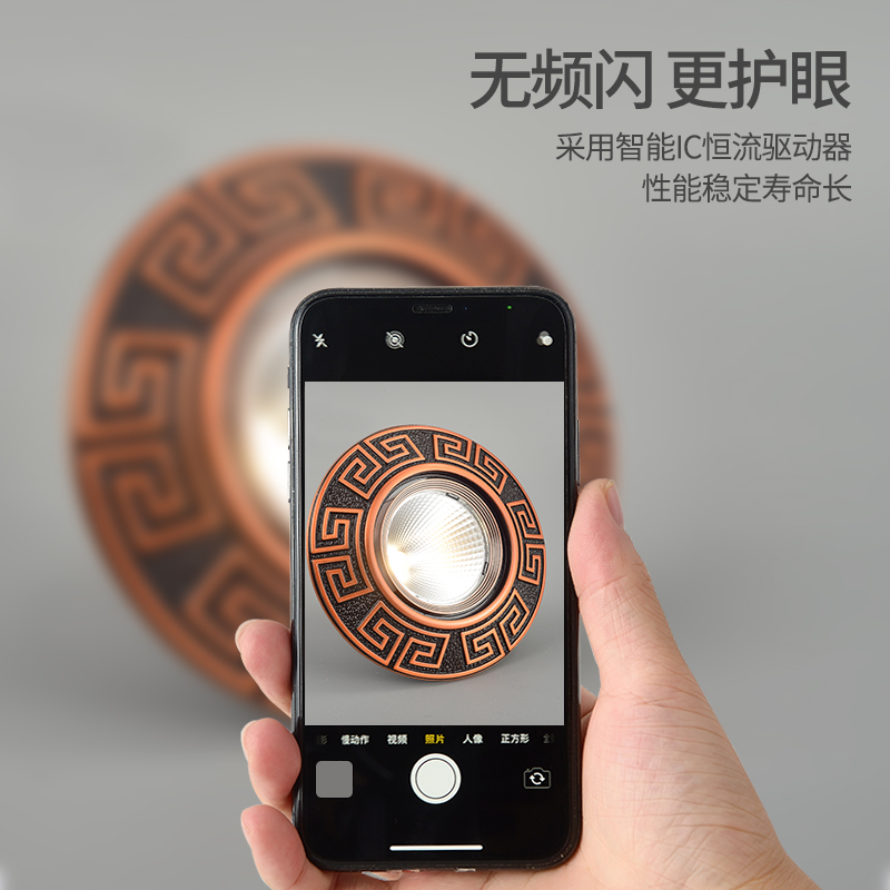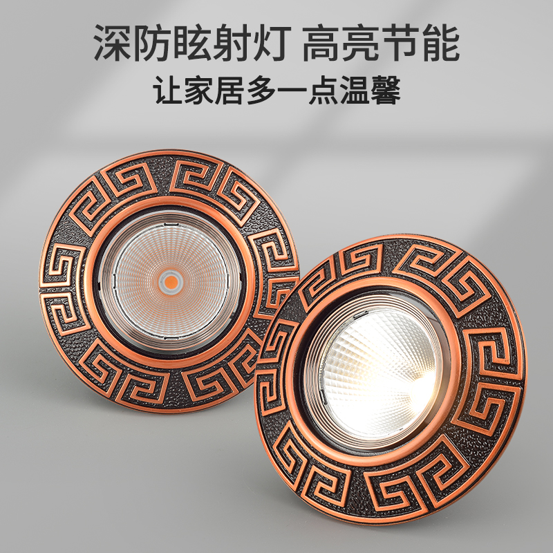 All-copper new Chinese anti-glare spotlight embedded hole light living room home downlight aisle villa ceiling light red bronze