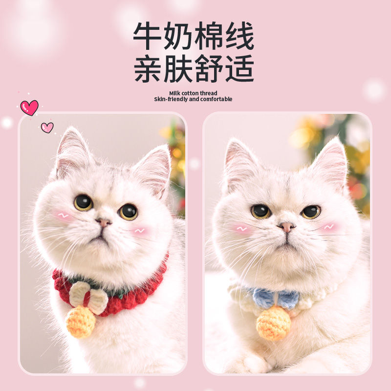 Kitty Neckline Pet Items Decoration Dog Ornaments Necklace Accessories Knitted Cat Neck Ring Cat Bell Catwalk Cat Enclosure Neck