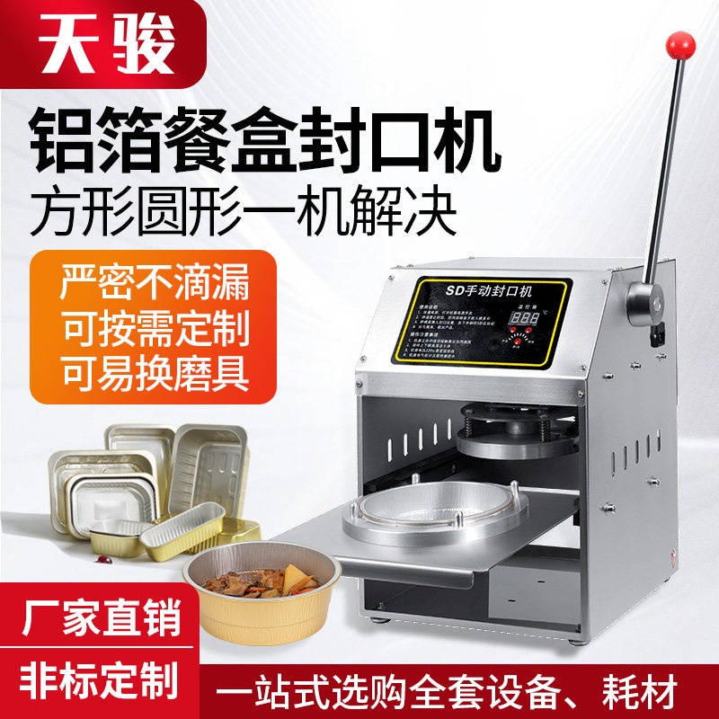Tianjun aluminum foil box sealing machine small hot pot disposable takeaway fast food box capping machine commercial automatic lobster spicy hot and insulated hot soup case Cooked Food Seafood Tin Cardboard Box Seal Bowl-Taobao