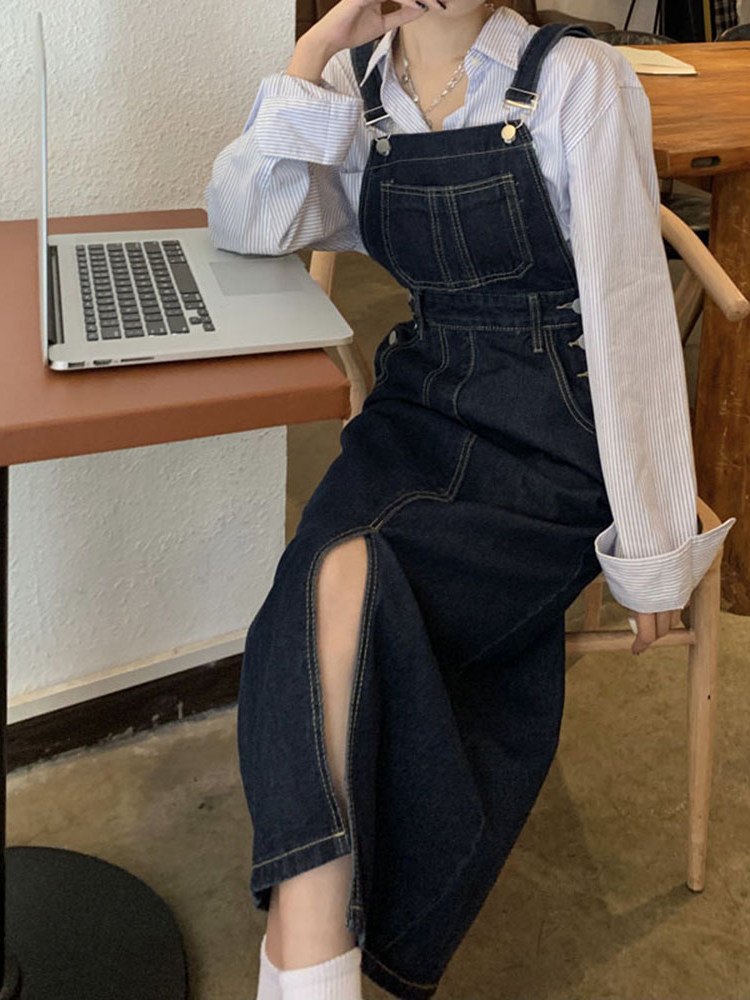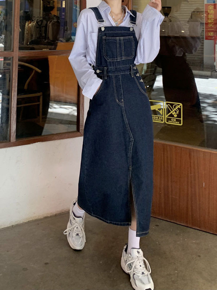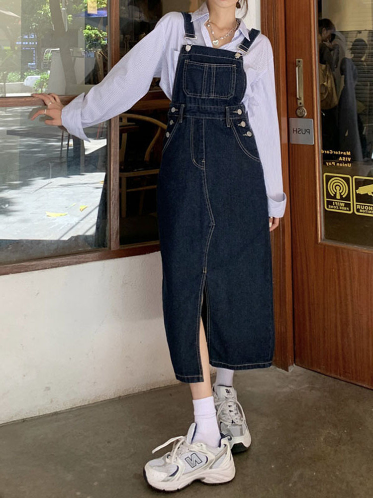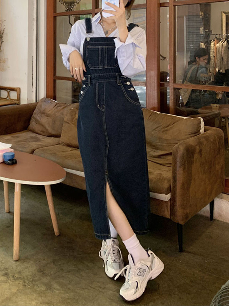 One-piece denim skirt women's 2022 new autumn and winter large size fat sister pear-shaped figure all-match thin cover crotch hug baby bag skirt