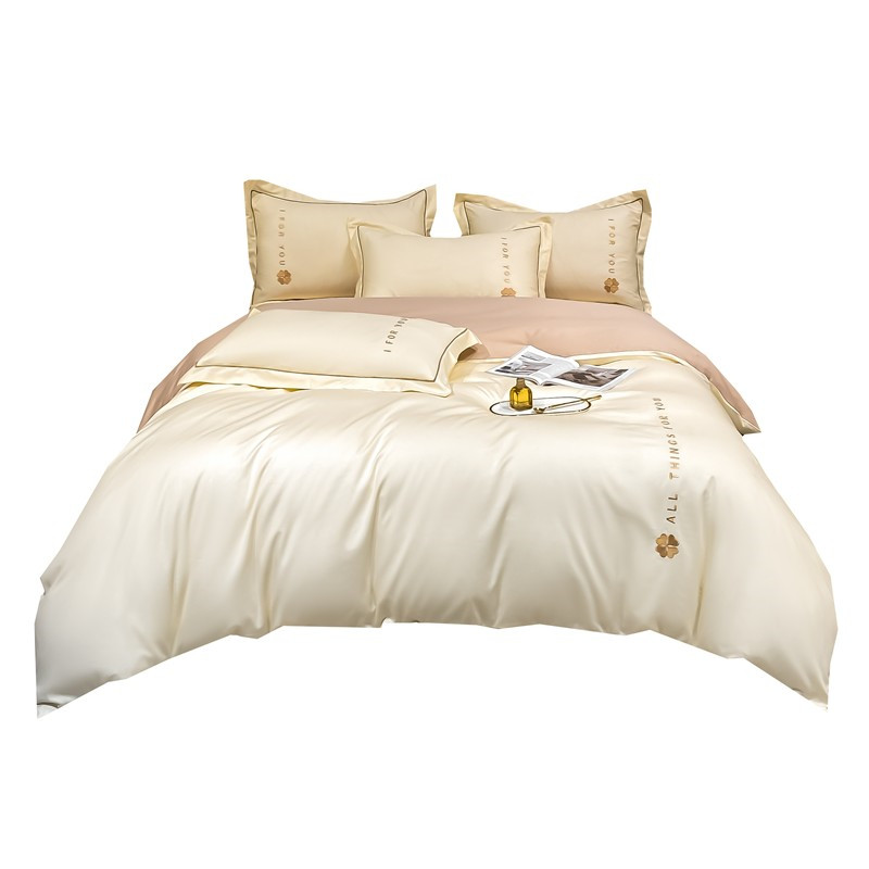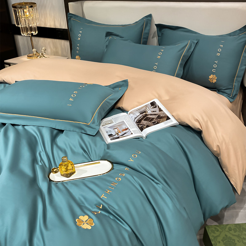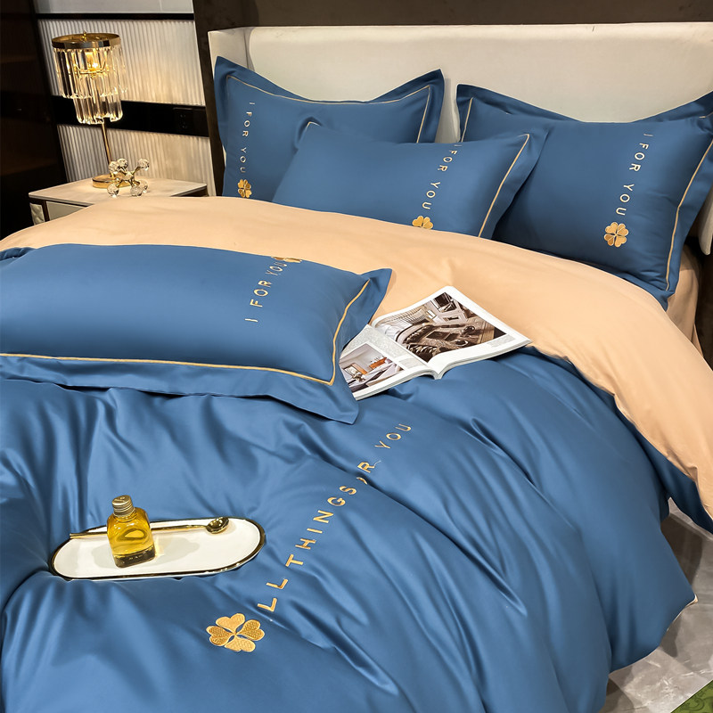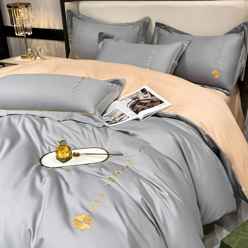 Luxury spring four-piece set of light luxury high-end 100 cotton cotton sheets bedding solid color soft quilt cover 4
