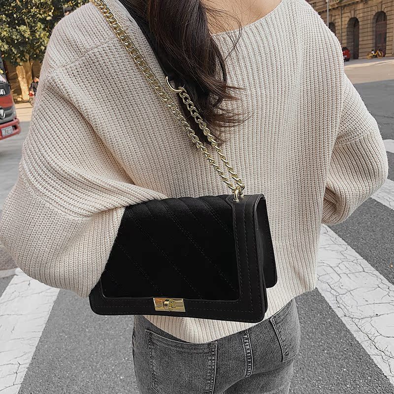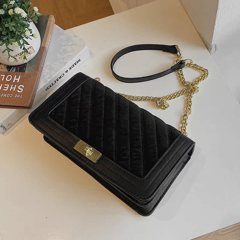 Famous TEMPERAMENT ~ ELEGANT DRESS STYLE VELVET DESIGN LADY BAG-INS FASHION NOBLE WIND SINGLE SHOULDER SQUARE BAG