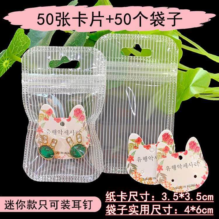 (cat card 4 * 6cm white bag) * 50 earrings bag size (cat card 4 * 6cm striped bag) * 50 earrings bag size (cat card 4 * 6cm transparent bag) * 50 ear