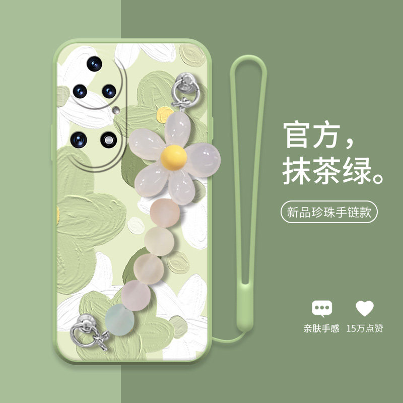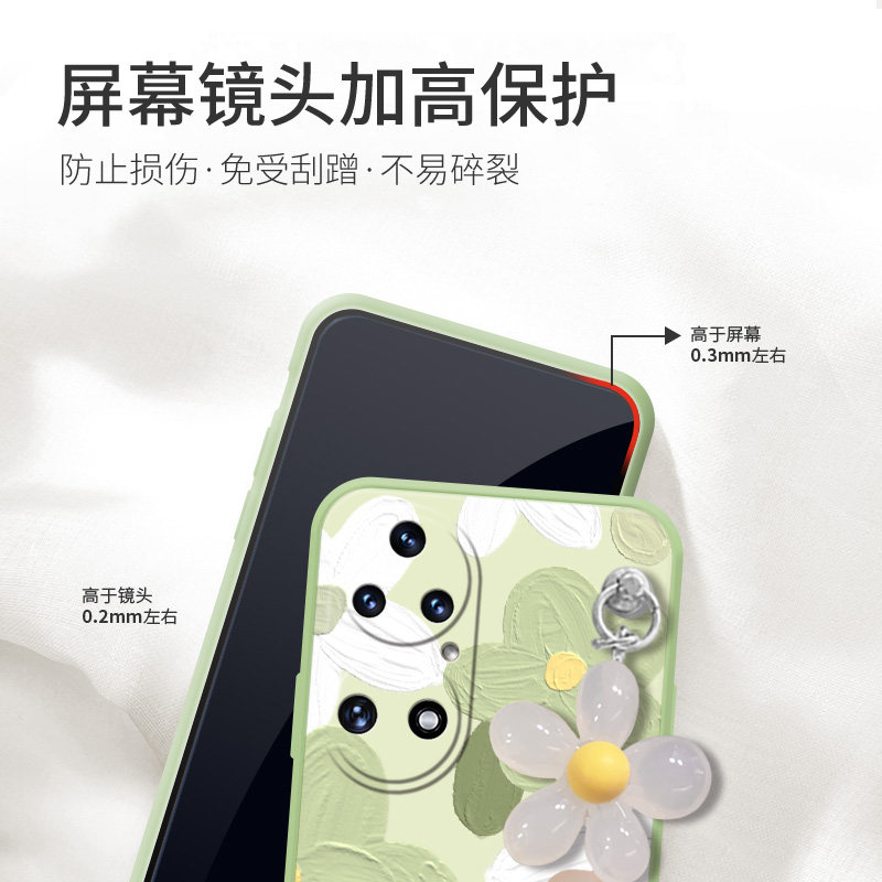 Green white flowers are suitable for Huawei p50 mobile phone protection shell fresh flower oil painting p50pro fashion and art creative handmade woman's liquid silicone lens full package anti-fall protection shell