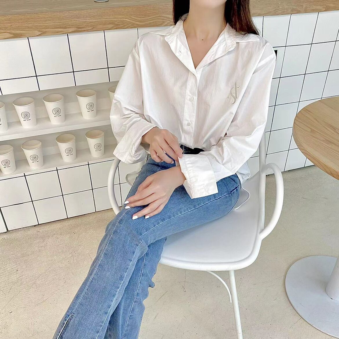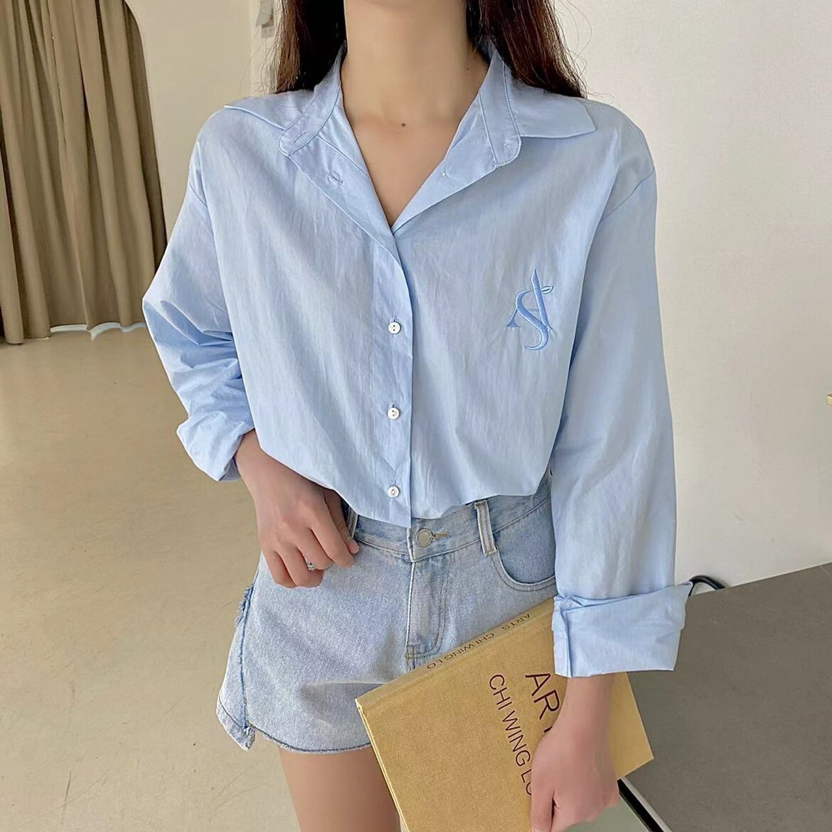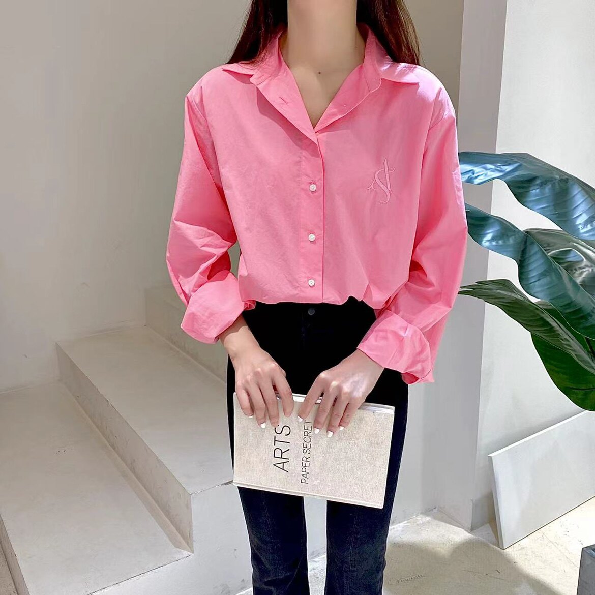 ACE Korea Shiren Ouni with the same paragraph 2022 spring and autumn pink long-sleeved shirt women's fashion all-match niche design