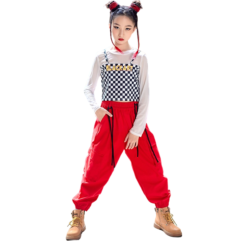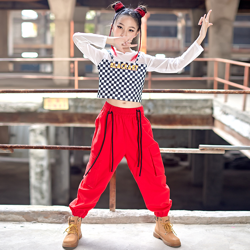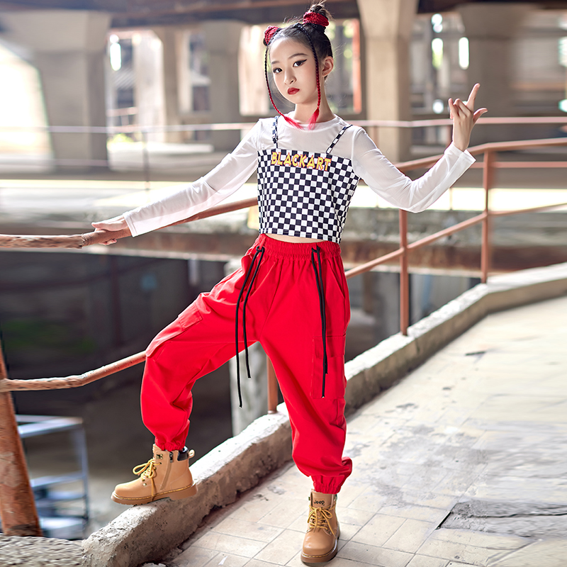 Girls hip-hop street dance suit with navel net jazz dance dress jazz dress suit children's performance suit autumn and winter