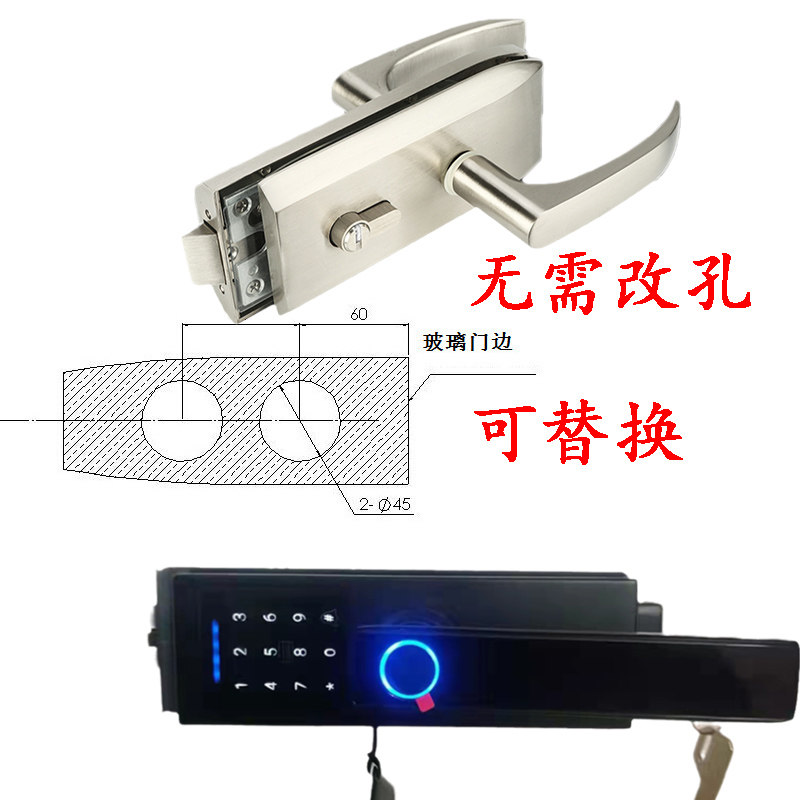 Frameless glass door fingerprint lock office partition door password lock high compartment board hand lock single and double door smart lock