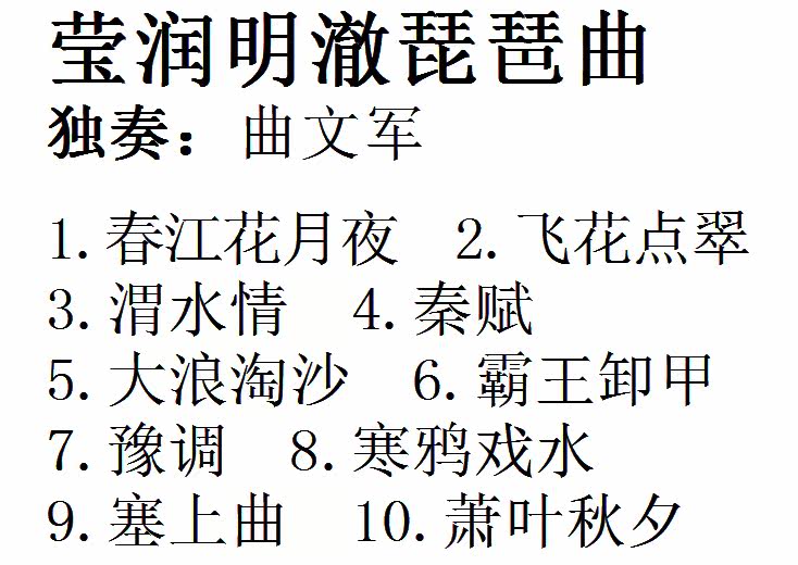 Qu Wenjun Pipa Solo CD Spring River Flower Moon Night Flying Flower Point Emerald Big Waves Washing the Sand Overlord Unarmor