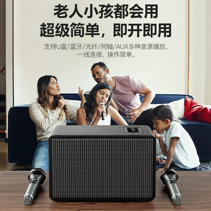 2022 new product debut 2 1 channel family karaoke set black single microphone (2 1 channel * 100W power * built-in battery * TV mobile phone karaoke) black double microphone (2 1 sound