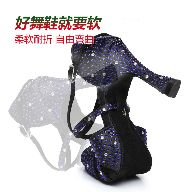2022 new professional latin dance shoes female adult soft sole dance shoes summer diamond advanced dance shoes salsa