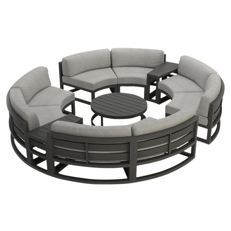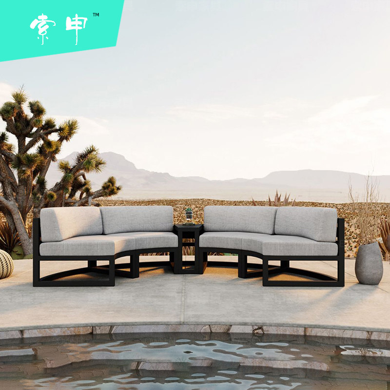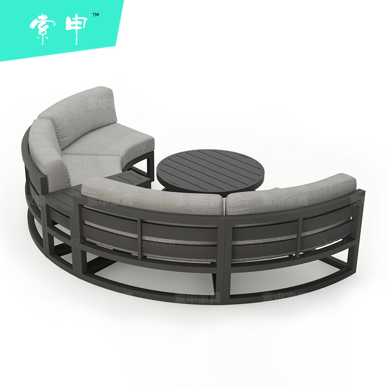 Unit curved sofa (all-aluminum paint) Double curved sofa (all-aluminum paint) Round coffee table (all-aluminum paint) Wedge-shaped corner table (all-aluminum paint) Semi-circle combination (all-aluminum paint) Round combination (all-aluminum paint)