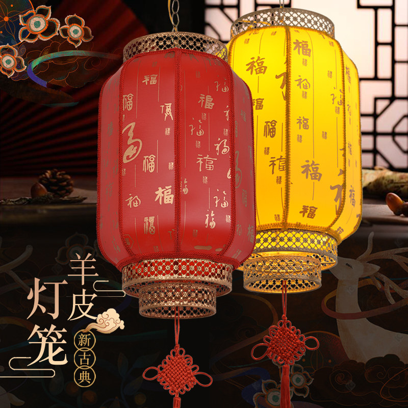 Lantern Outdoor Lantern Hanging Accessories Waterproof Sheep Leather Antique Chinese Style Pendant Light Jo Relocating New Wedding Dads Red Winter Melon Lantern-Taobao