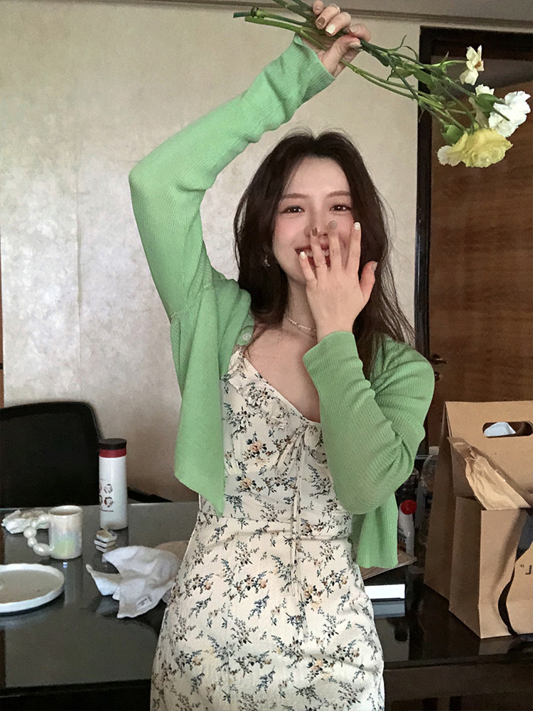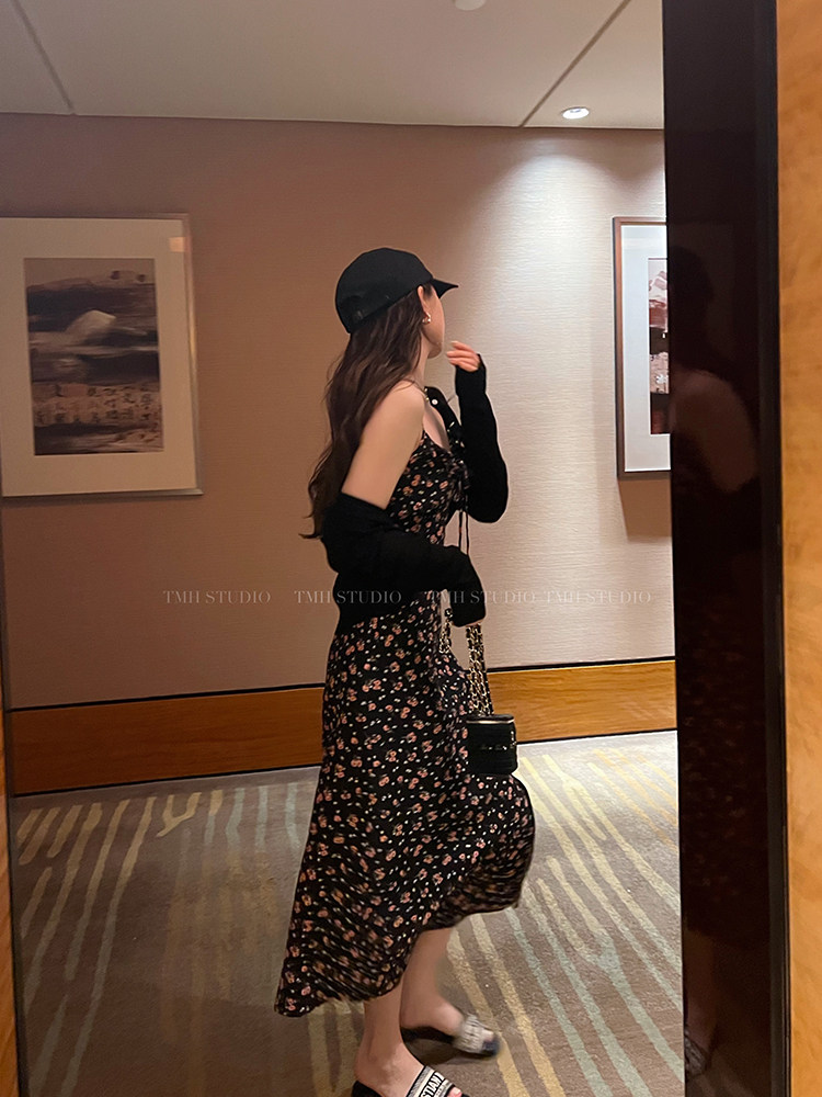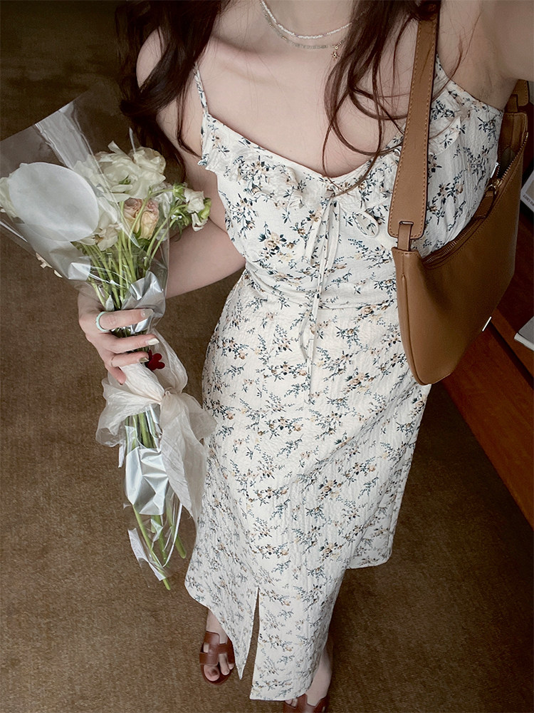 TMH STUDIO Icelandic white tea floral suspender skirt 2022 new female French style sleeveless dress summer