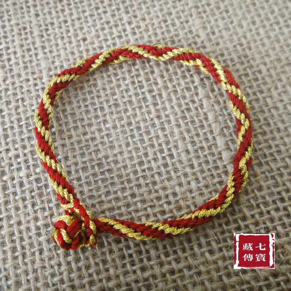 Tibetan Seven Treasures Zaki Temple hand-woven nine-eyed immortal diamond rope for men and women hand rope 4mm red gold