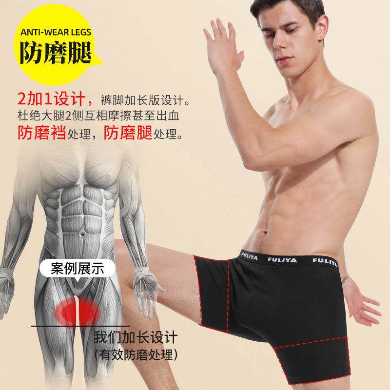 Running briefs Men's anti-wear crotch pants Men's flat corner pants underpants male anti-wear legs lengthened spring and summer large yard fattening pants-Taobao