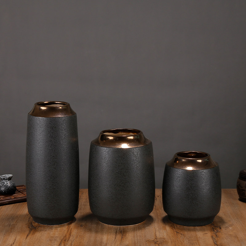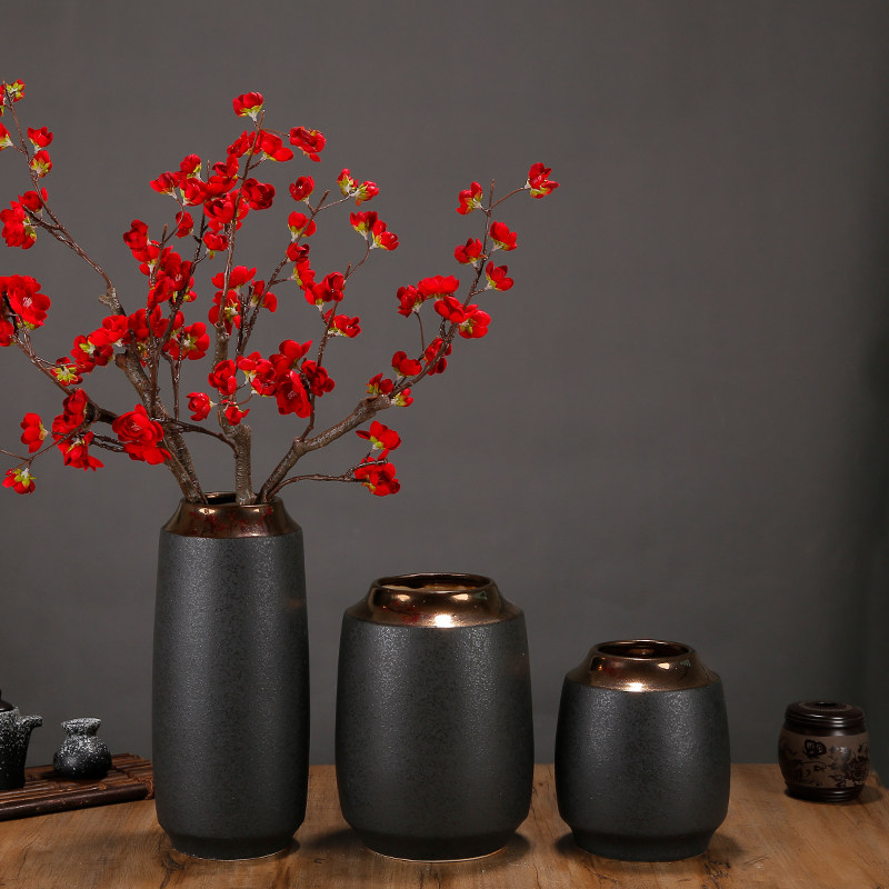 New Chinese retro creative black gold ceramic vase decoration living room TV cabinet table top dry flower decoration decoration