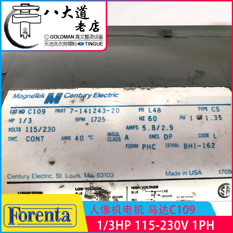 U.S. FORENTA Faulingta portrait machine motor motor C109 1 3HP 115-230V 1PH