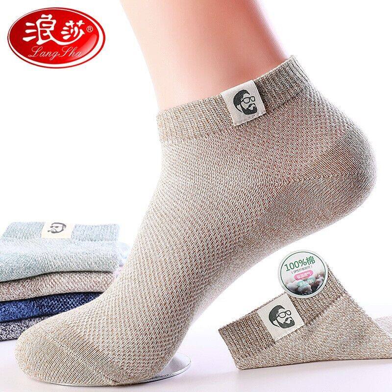 Langsha socks men's socks men's socks spring and summer thin mesh breathable cotton sports boat socks summer cotton socks short tube