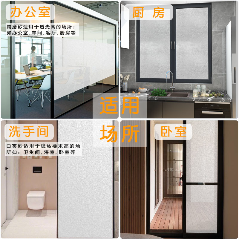 Adhesive frosted glass film living room office light-transmitting opaque window glass sticker anti-peeping privacy film