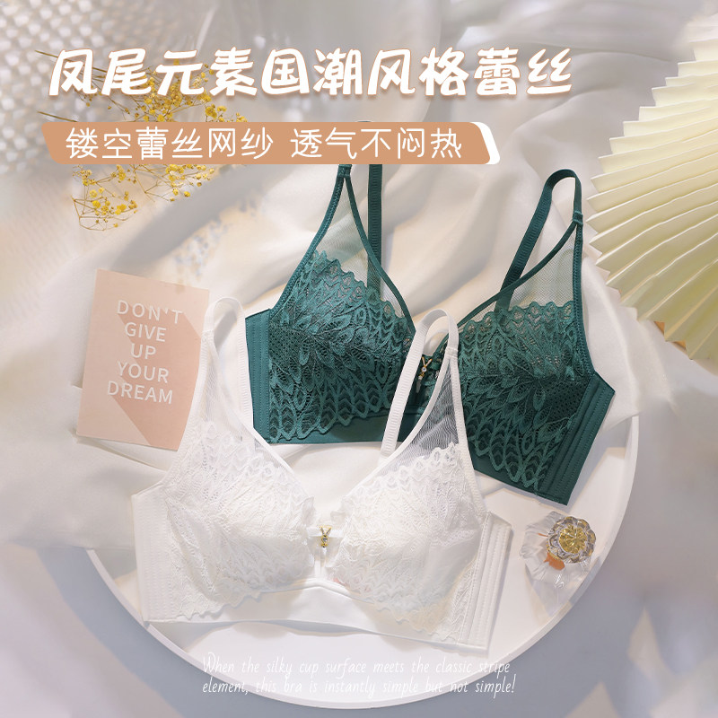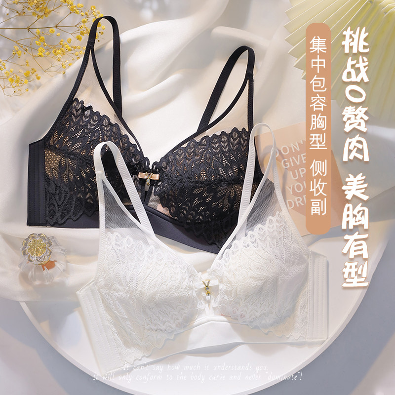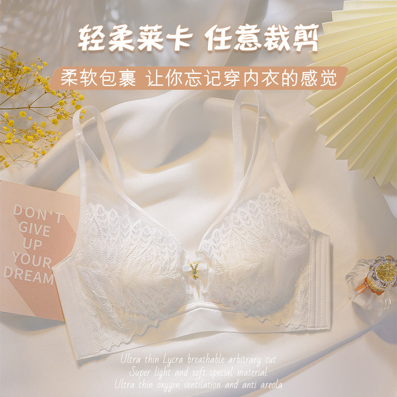 Summer ultra-thin lingerie women's large breasts with small breasts gathered to collect auxiliary milk anti-sagging rabbit ears Water crystal cup thin bra