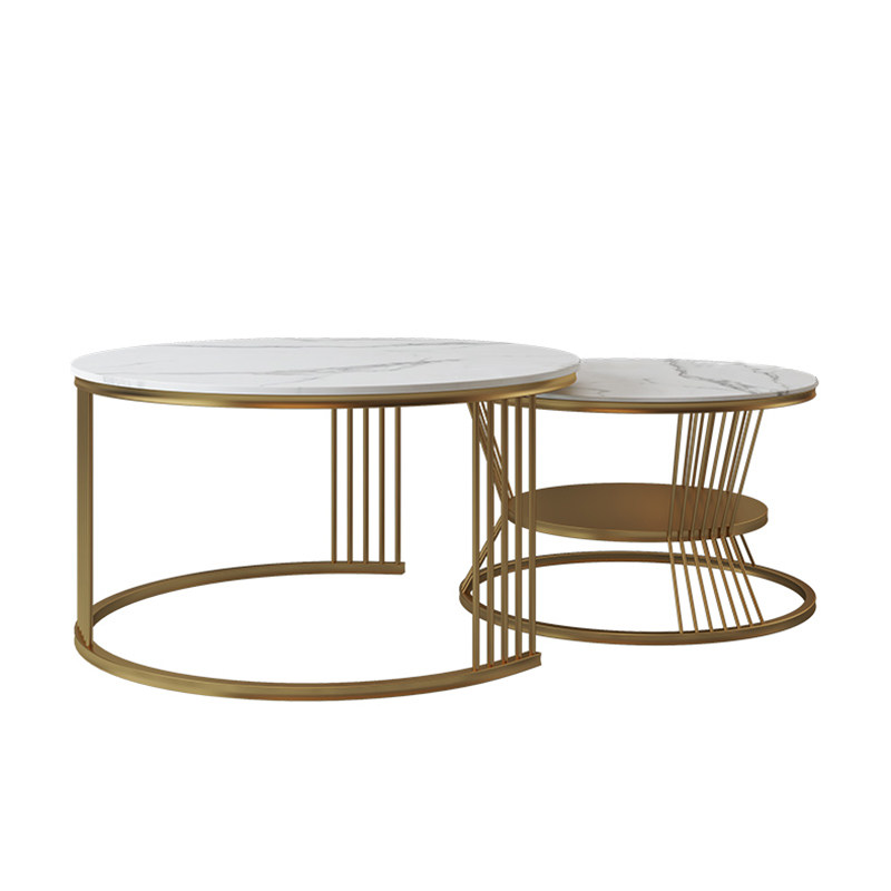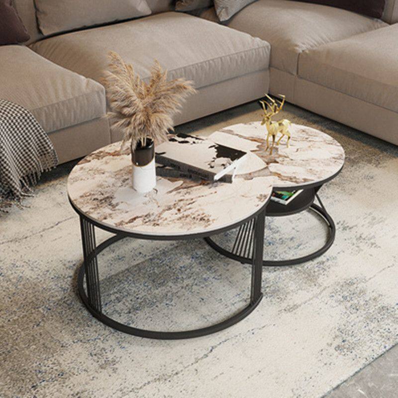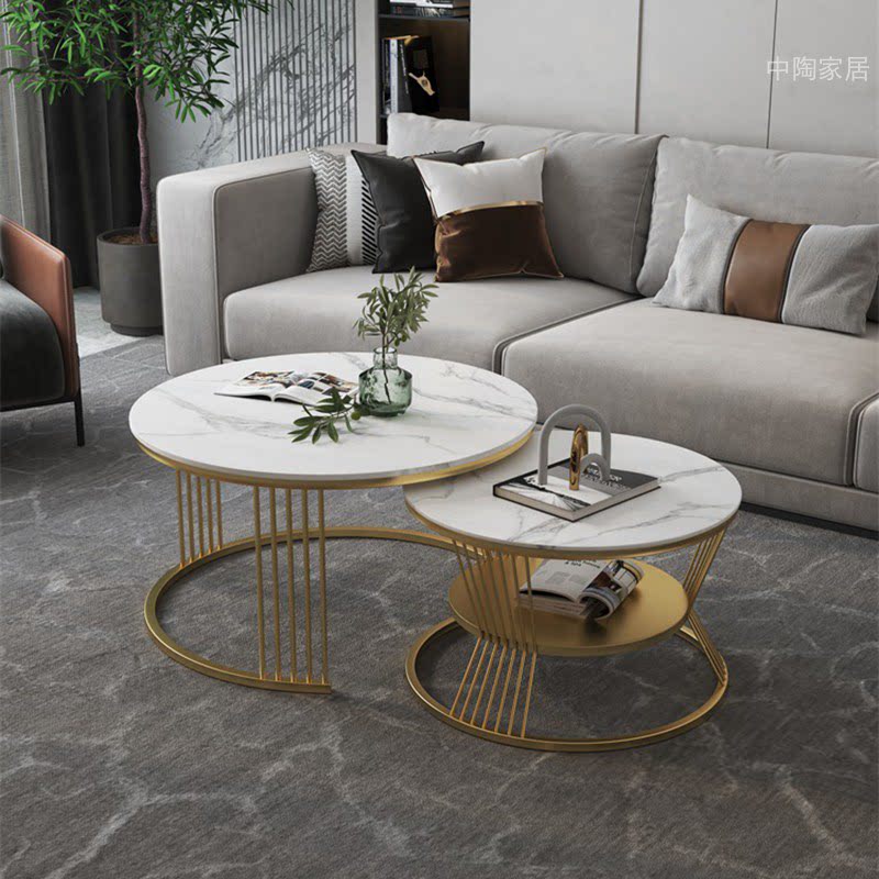Net red rock plate round coffee table modern steel frame combination light luxury living room home hotel telescopic minimalist style small coffee table
